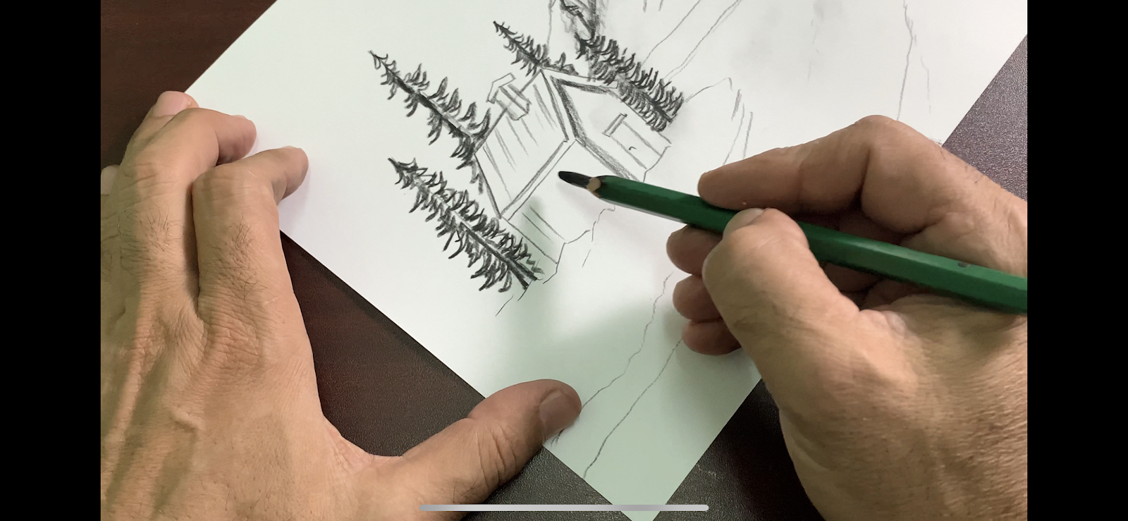 تعليم رسم منظر طبيعي بالقلم الرصاص للاطفال خطوات رسم منزل وبحيرة وجبال وطيور