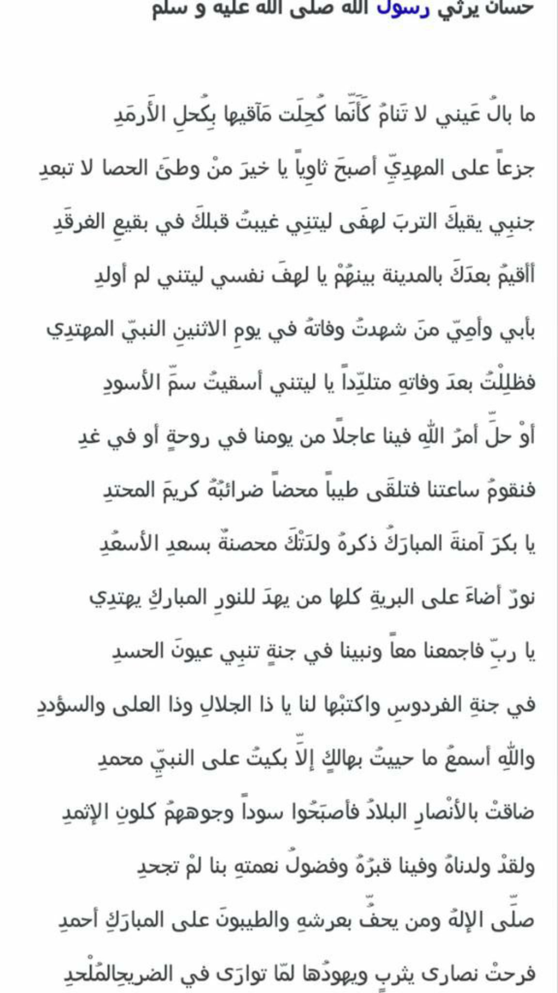 قصيدة حسان بن ثابت في رثاء النبي صلى الله عليه وسلم استمع إلى الصوت وشاهد الفيديوهات